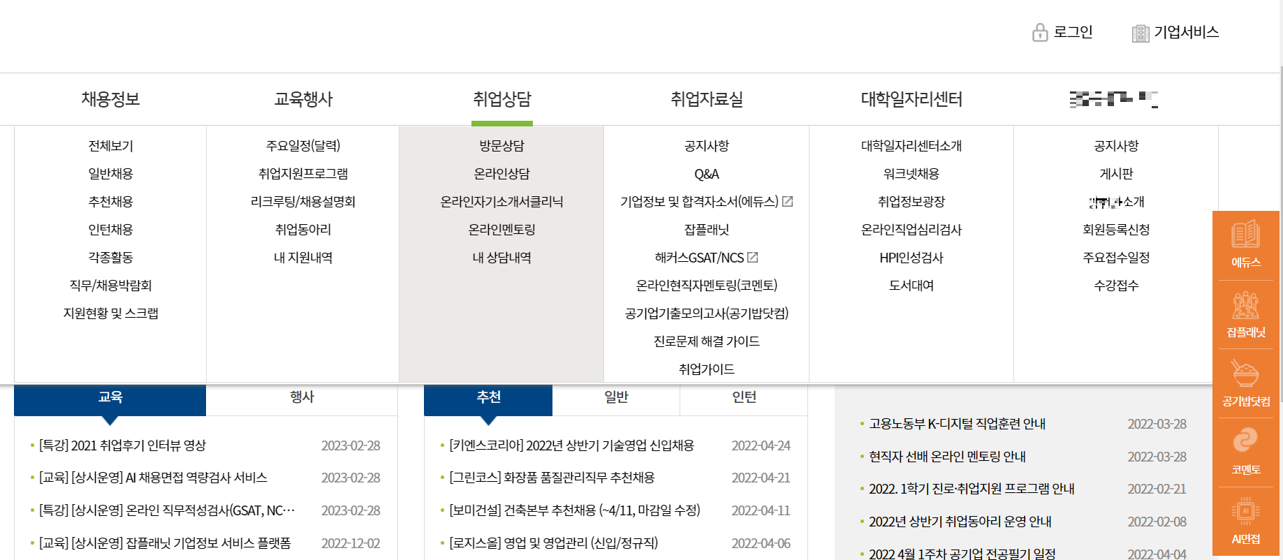 (3) - 1 교내 홈페이지 공지사항, 교내 취업지원 사이트