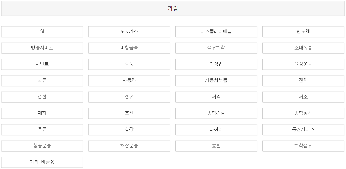 위 사진의 기준에서 해당하는 업종을 클릭하여 조회하면 해당 업종의 기준순위별 기업 리스트를 확인할 수 있습니다.